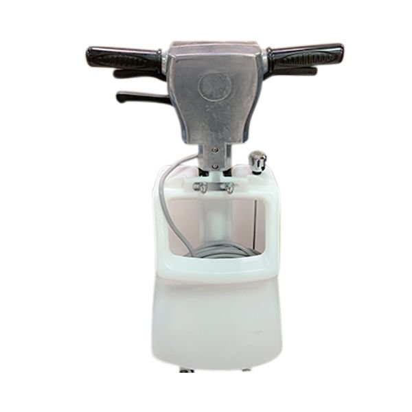 EL DETERGENTE: en La Abrillantadora LUSTER 17″  circula a través de una manguera al cepillo o porta pad cuando se acciona un comando instalado tipo palanca instalado en el manillar de la maquina.