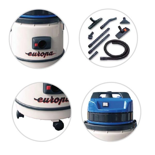 La Aspiradora Industrial de Polvo y Agua – 27 litros – 1 Motor   es una maquina para aspirado de oficinas, ideal por su tamaño para el transporte adecuado, por ser una máquina solo para aspirado de solidos o polvo, su motor es silencioso. Con sus variados accesorios permite llegar a todos los lugares incluyendo rincones el aspirado de alfombras, cortinas, sillones, etc. Usted puede realizarlo sin inconvenientes con esta máquina preparada y diseñada para trabajar varias horas. El filtro de poliéster es fácil de limpiar y volver a usar