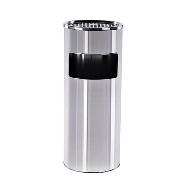 El Basurero Porta Cenicero Acero Inoxidable tiene una capacidad de 30 litros. Cuenta con una rejilla de metal para depositar los cigarrillos. De origen chileno.